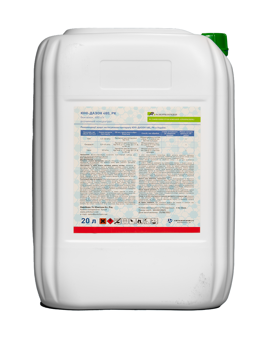 Високоселективний контактний післясходовий гербіцид для захисту сої, кукурудзи та гороху.