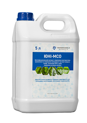 ЮНІ-МСО призначений для заміни не-іонних поверхнево-активних речовин і концентратів рослинної олії в програмах внесення робочих сумішей для обприскування.