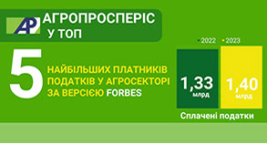 «Агропросперіс» у топ-5 найбільших платників податків АПК України у 2023 році