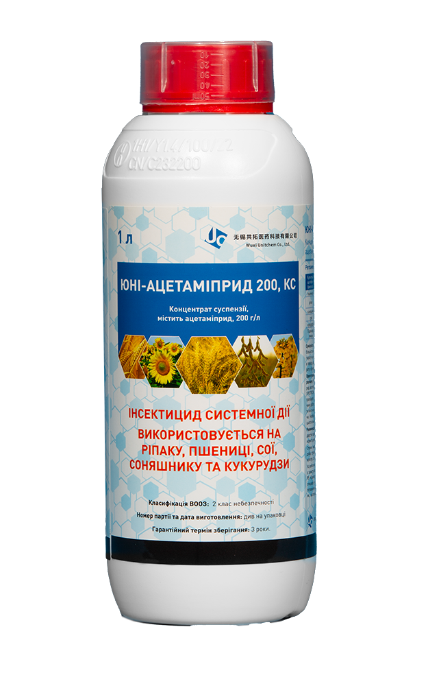ЮНІ‑АЦЕТАМІПРИД – пестицид із класу неонікотиноїдів, є найбільш безпечною для бджіл речовиною і дозволений для використання в країнах ЄС.
