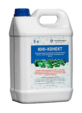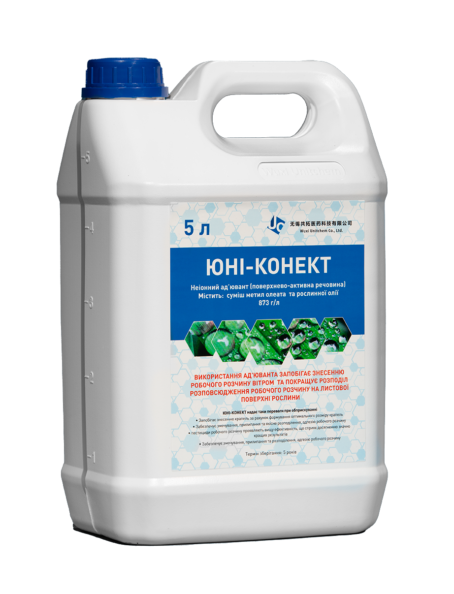 ЮНІ‑КОНЕКТ добре розчиняється у воді та додається в бак обприскувача ПІСЛЯ того, як пестициди вже розчинилися у баку та була додана вода. Необхідно підтримувати розмішування протягом внесення бакової суміші.